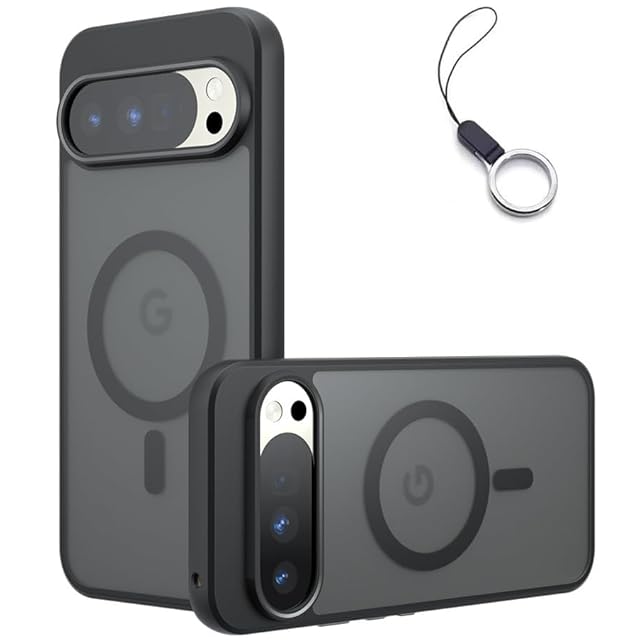 Google Pixel 10/10 Proケースマット感 半透明 MagSafe対応マグネット搭載 マグセーフ対応 グーグル ピクセル10 プロ カバー 全面保護 耐衝撃 薄型 軽量 指紋防止 黄ばみなし ストラップホール Pixel 10 Proケース(ブラック, Google Pixel 10/10 Pro)
