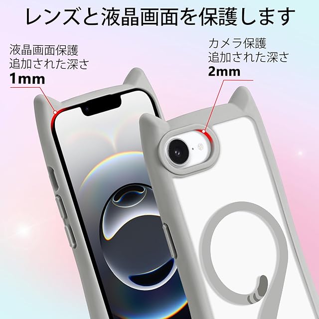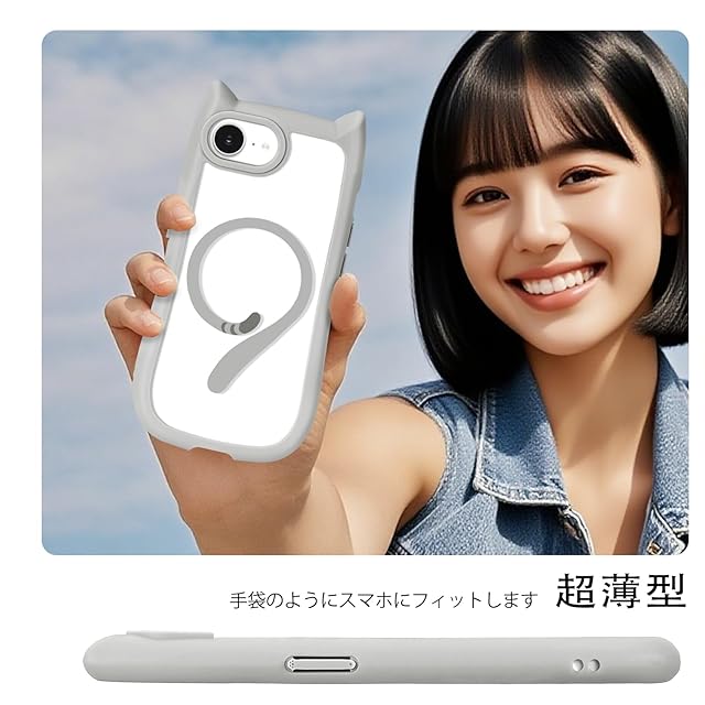 【カワイイ子猫耳デザイン】小さな猫みみがとても可愛く、あなたのアイフォン17プロマックスをキュートでおしゃれに見せます。丸く巻いているしっぽの様子のマグネットもユニークでかわいさ満点。ケースの裏面はクリアですので、あなたなりのスタイルでお好みのステッカーや写真などを貼ることもできます。
