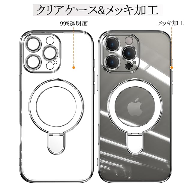 JOOBOY スマホケース 対応 ケース MagSafe対応 クリア リング付き メッキ仕上げ レンズカバー付き ソフトTPU 耐衝撃 傷に強い背面 ワイヤレス充電 ストラップホール付き 磁気 カバー