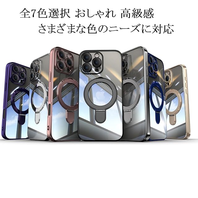 JOOBOY スマホケース 対応 ケース MagSafe対応 クリア リング付き メッキ仕上げ レンズカバー付き ソフトTPU 耐衝撃 傷に強い背面 ワイヤレス充電 ストラップホール付き 磁気 カバー