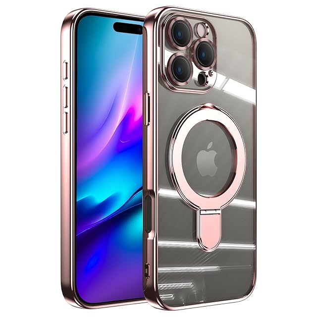 JOOBOY スマホケース 対応 iPhone 16 Pro Max ケース MagSafe対応 クリア 透明 リング付き メッキ仕上げ レンズカバー付き ソフトTPU 耐衝撃 傷に強い背面 ワイヤレス充電 ストラップホール付き アイフォン16プロマックス 磁気カバー (ローズゴールド, 16Pro Max)