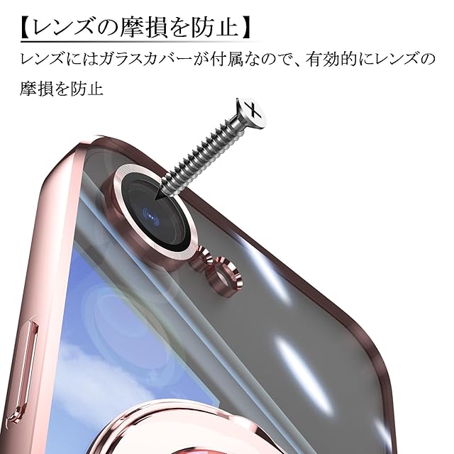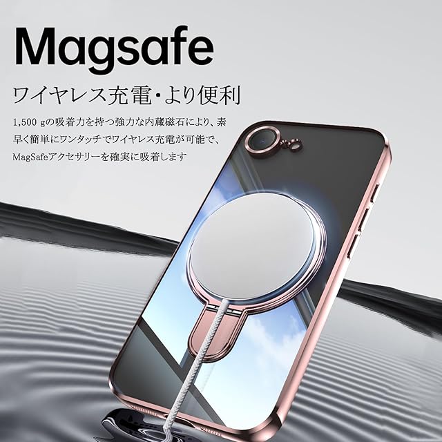 商品名:JOOBOY スマホケース 対応 iPhone 16e ケース MagSafe対応 クリア 透明 リング付き メッキ仕上げ レンズカバー付き ソフトTPU 耐衝撃 傷に強い背面 ワイヤレス充電 ストラップホール付き アイフォン16e 磁気カバー (ローズゴールド, 16e)