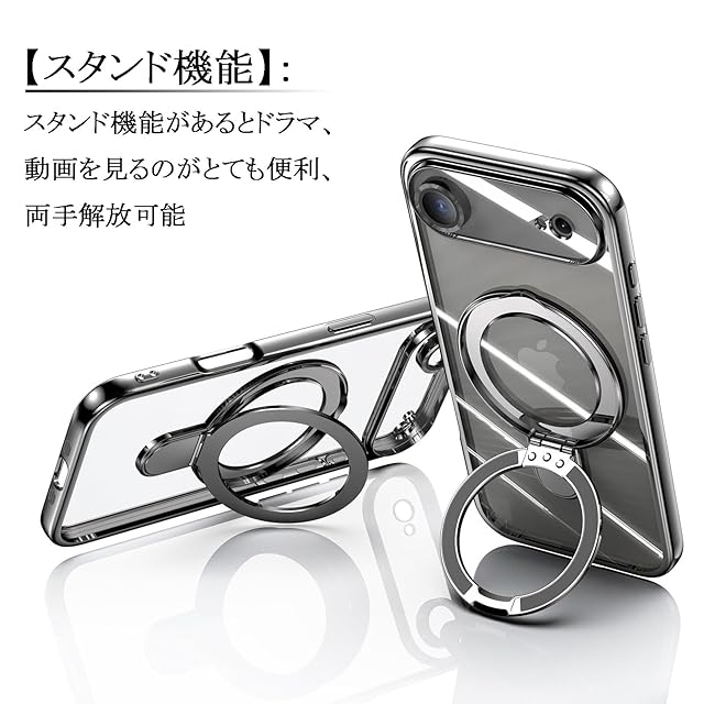 JOOBOY スマホケース 対応 ケース MagSafe対応 クリア リング付き メッキ仕上げ レンズカバー付き ソフトTPU 耐衝撃 傷に強い背面 ワイヤレス充電 ストラップホール付き 磁気 カバー