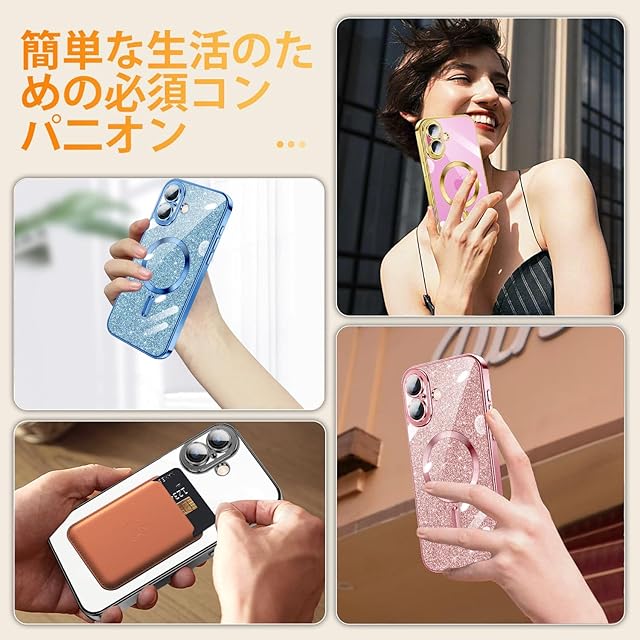 商品名:iPhone 16 用 ケース クリア MagSafe対応 マグネット搭載 2枚 HDフィルム付き キラキラ グリッターカード ストラップ付き アイフォン 16 カバー マグセーフ対応 薄型 軽量 レンズ保護 全面保護 耐衝撃(ブラック)