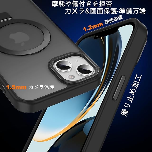 AVETUL iPhone 13 ケース MagSafe対応 隠しスタンド ワイヤレス充電対応 マット仕上げ マグネット搭載 超強磁力 滑り止め 米軍MIL規格耐衝撃 iPhone13ケース ストラップホール アイフォン13ケース 半透明ハード カバー (ブラック)