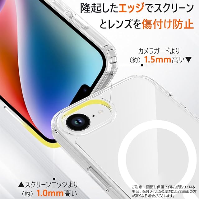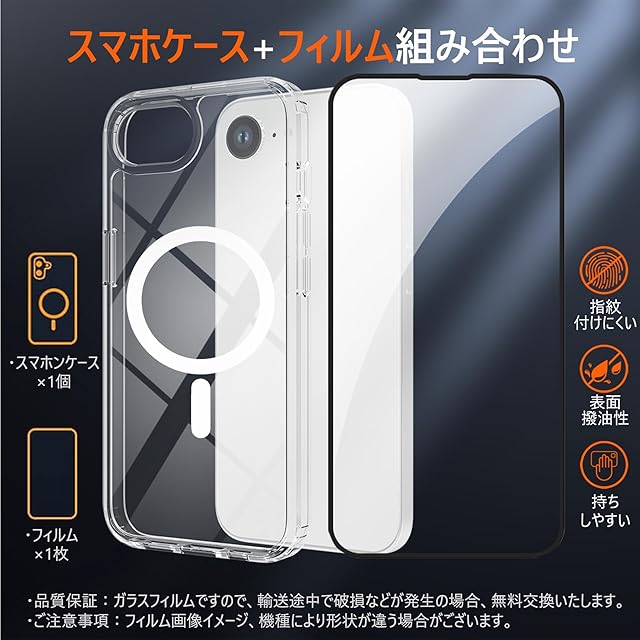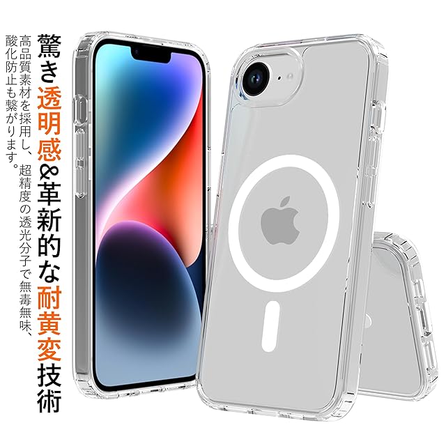 商品名:MagSafe対応 iPhone 16e ケース ガラスフィルム付き クリア 透明 マグネット搭載 アイフォン 16e ケース PC+TPU 滑り止め 指紋防止 米軍MIL規格 耐衝撃 耐久性 全面保護 黄ばみなしアイフォンカバー いPhone se4 2025 グセーフ対応 (クリア, iPhone SE4/16E)