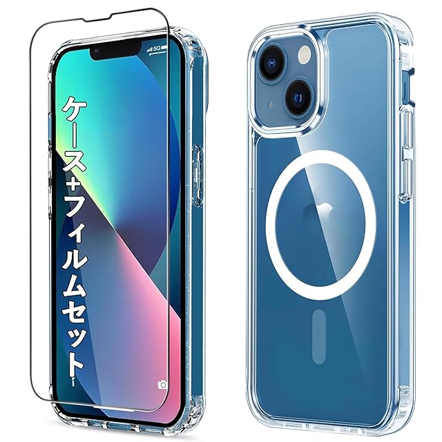商品名:MagSafe対応 iPhone14/iPhone13 ケース クリア ガラスフィルム付き 透明 マグネット搭載 アイフォン 13/14ケース PC+TPU 滑り止め 指紋防止 米軍MIL規格 耐衝撃 耐久性 全面保護 黄ばみなしアイフォンカバー いPhone 14/13 グセーフ対応 (クリア, iPhone 13/14)