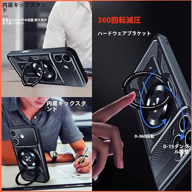 商品名:iPhone 17 Air 用 ケース MagSafe対応 リング360°回転スタンド機能 縦横両対応 PC背面 + TPUバンパー 2重構造 黄ばみ防止 いphone17 Air スマホケース ワイヤレス充電 レンズ保護 米軍規格 耐衝撃 アイフォン17 Air カバー マグネット搭載 車載ホルダー マグセーフ対応 おしゃ
