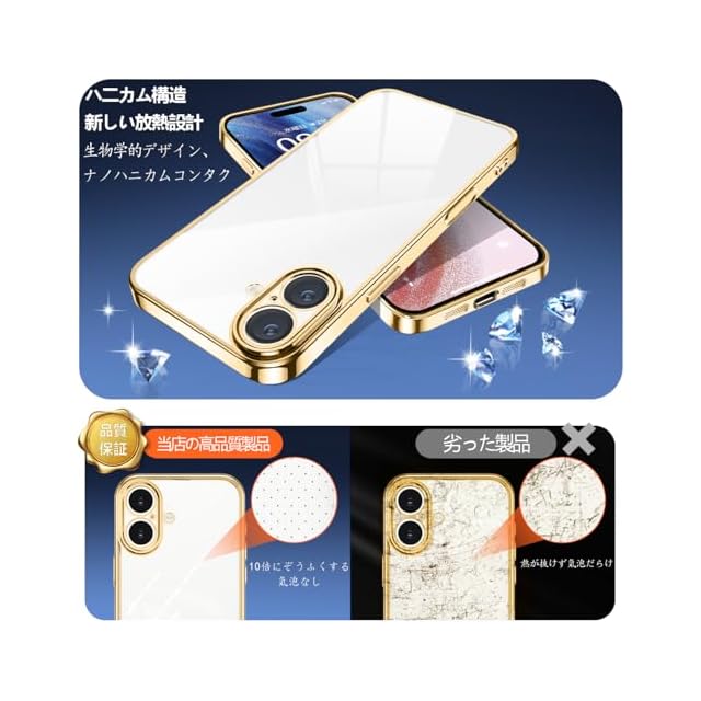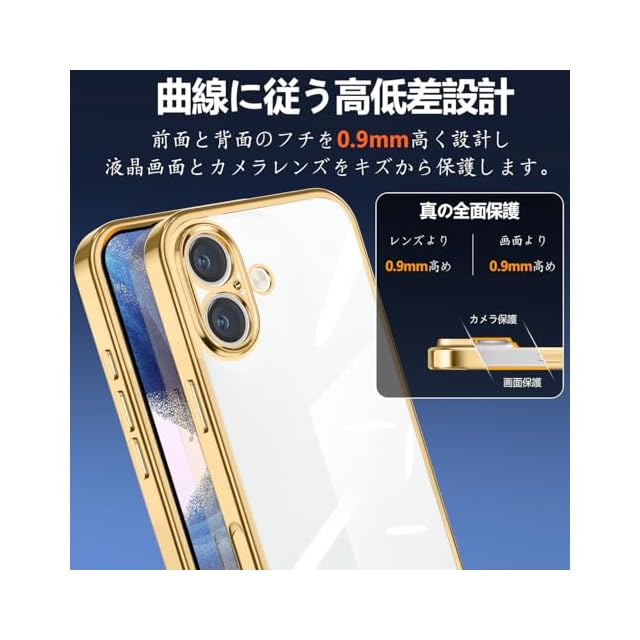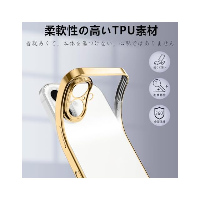 商品名:Rusinaione ケース 用の iPhone 17 クリア カバー 耐衝撃 薄型 米軍MIL規格 tpu カバー 人気(ゴールド)