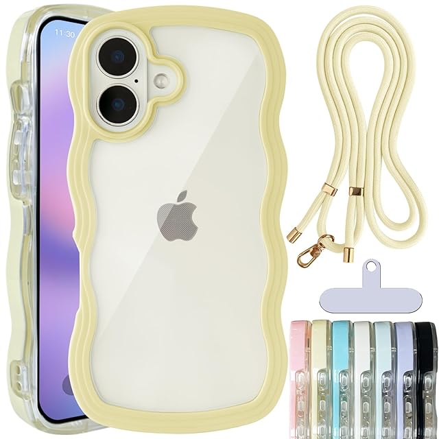 shinyle ケース クリア iphone 用 17 スマホケース 波型 ショルダー 可愛い ストラップ 透明 カバー うねうね おしゃれ いphone17 ストラップ付き 首掛け 肩掛け 耐衝撃 韓国 推し活 ワイヤレス充電対応 ストラップホール付き アイフォン適用 かわいい おしゃれ スマホカバー なみなみ ウェーブ あいふぉん17対応 携帯 クリアカバー