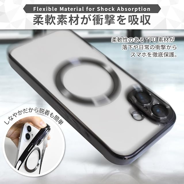 商品名:シズカウィルRe iPhone 13 ケース MagSafe対応 クリア レンズ保護 カバー ワイヤレス充電 耐衝撃 ハイブリッド7 スマホケース 1個入り ブラック