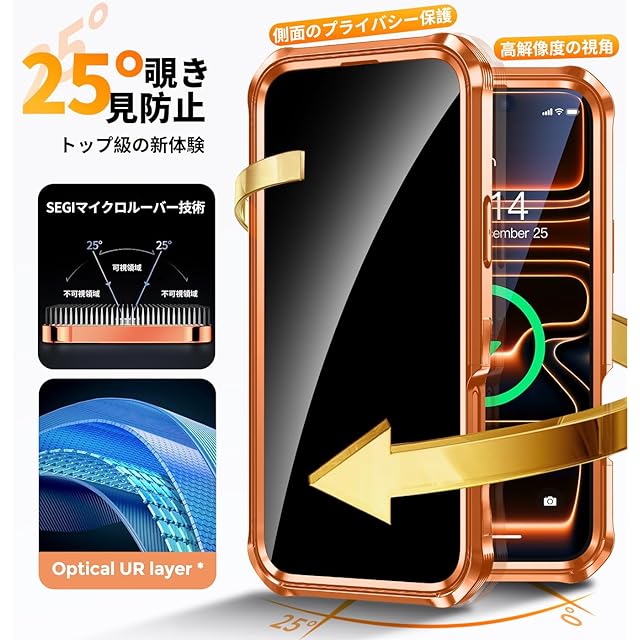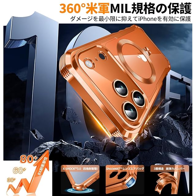 商品名:【多機能隠しスタンド・マグセーフ対応・覗き見防止】WTAIYUN iPhone 17 用 ケース 全面保護 CDリング 縦横両対応 ワイヤレス充電対応 米軍MIL規格 耐衝撃 高感度タッチ 両面 いphone17 カバー ストラップホール付き メッキバンパー PC背面 透明 黄変防止 アイフォン17 ケース 6.3イン チ (オレンジ)