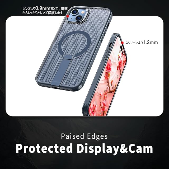 【上質なPC+TPU素材】、【放熱性高い+超強耐衝撃性】、【スタンド付き+強力な磁力吸着+ストラップホール】、【滑り防止・握り心地抜群】