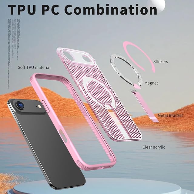 商品名:YUZOR for iPhone 17 Air ケース 冷却 放熱 メッシュ スマホケース MagSafe対応 スタンド付き アイフォン17 Air カバー 滑り止め 指紋防止 耐衝撃 米軍MIL規格取得 ストラップホール付き 6.6インチ (iPhone17Air ピンク) FX-17Air-fen