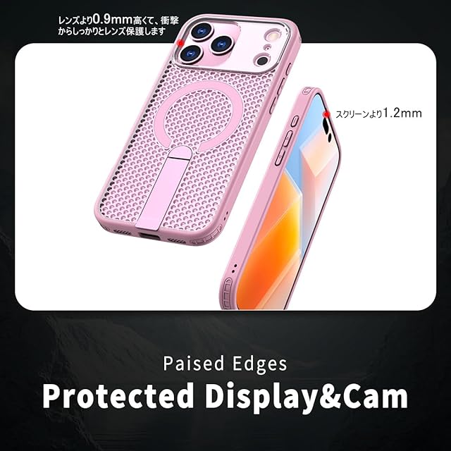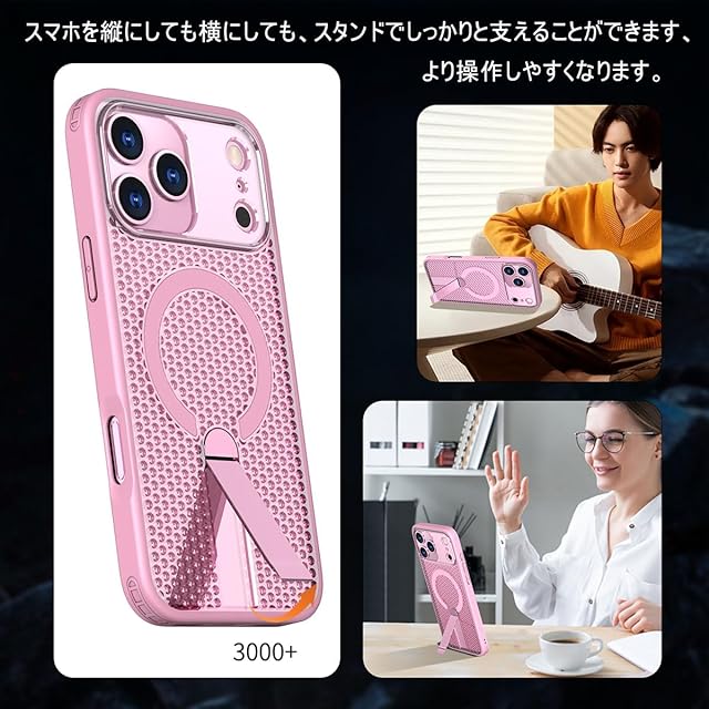 商品名:YUZOR for iPhone 17 Pro Max ケース 冷却 放熱 メッシュ スマホケース MagSafe対応 スタンド付き アイフォン17 Pro Max カバー 滑り止め 指紋防止 耐衝撃 米軍MIL規格取得 ストラップホール付き 6.9インチ (iPhone17ProMax ピンク) FX-17ProMax-fen