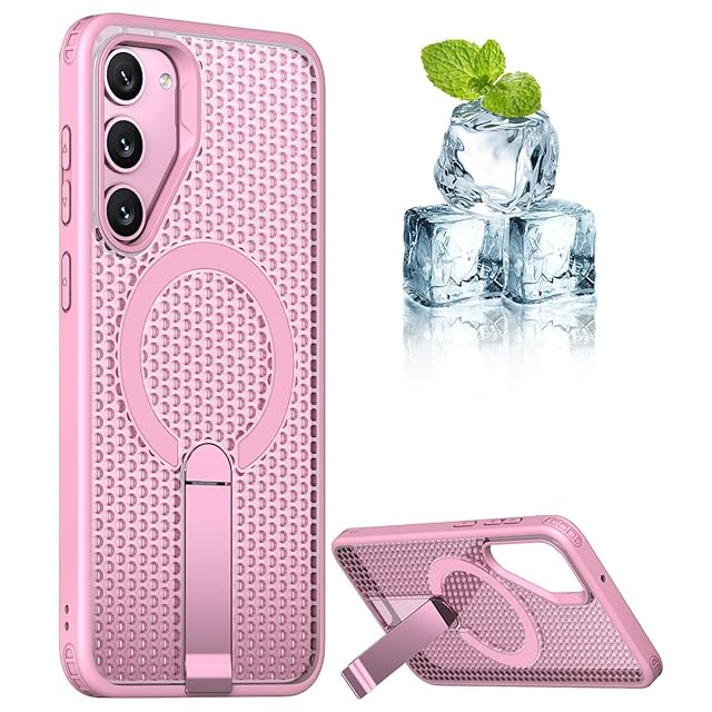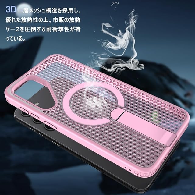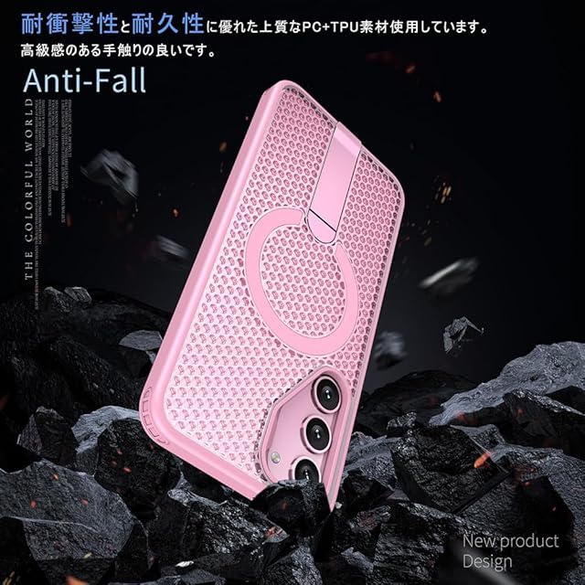 商品名:YUZOR for Galaxy S23 Plus ケース 冷却 放熱 メッシュ スマホケース Qi充電 スタンド付き Samsung S23 Plus カバー 滑り止め 指紋防止 耐衝撃 米軍MIL規格取得 ストラップホール付き (GalaxyS23plus ピンク) FX-S23plus-fen