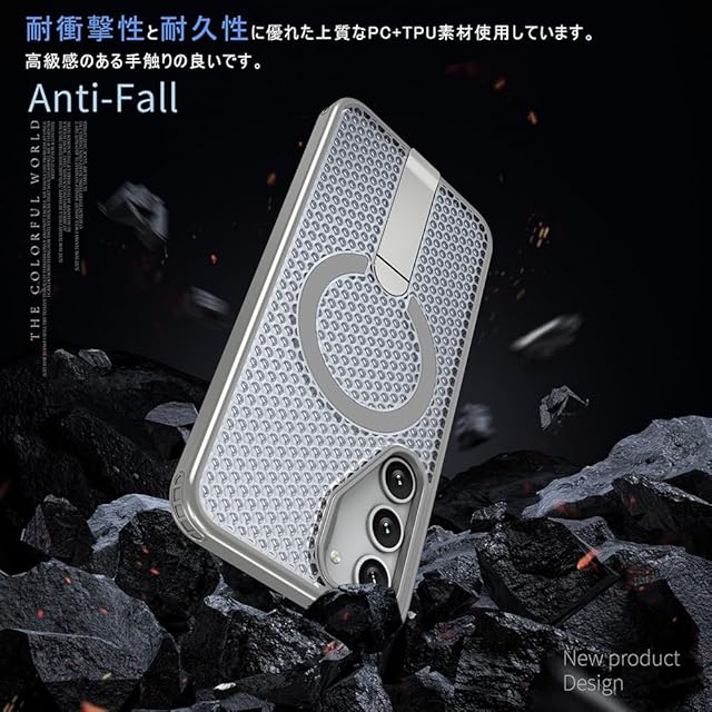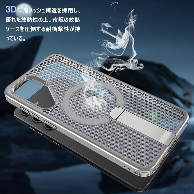 【上質なPC+TPU素材】、【放熱性高い+超強耐衝撃性】、【スタンド付き+強力な磁力吸着+ストラップホール】、【滑り防止・握り心地抜群】