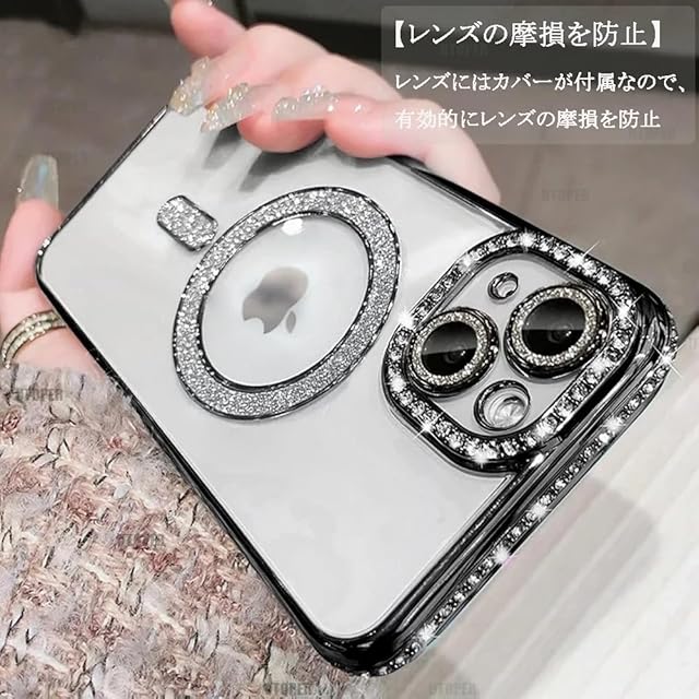 商品名:JOOBOY スマホケース 対応 iPhone 14 クリア ケース 透明 メッキ加工 Magsafe対応 きらきら ブリンブリン 衝撃吸収 かわいい キラキラ 女性 人気 キャラクター ワイヤレス充電対応 おしゃれ ストラップホール付き アイフォン14 携帯カバー (ブラック, iPhone 14)