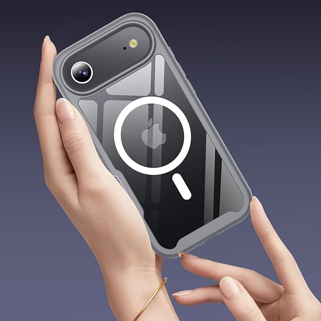 商品名:Aunote iPhone17 Air ケース クリア 全面保護 MagSafe対応 マグセーフ ワイヤレス充電対応 米軍MIL規格 耐衝撃 スマホケース iPhone17air ケース 透明 カバー グレー