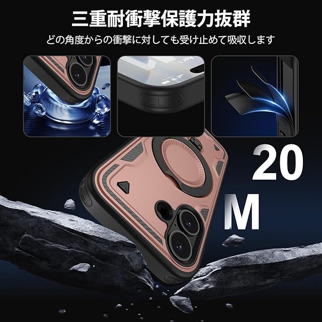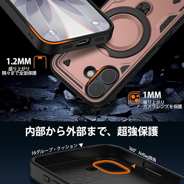 商品名:Viviber iPhone17用ケース 全面保護 耐衝撃 絶対割れないマグネット搭載【MagSafe対応/360度回転スタンド】ワイアレス充電対応アイフォン17ケース リングつきカバー 指紋防止 いphone17用ケース 磁気スマホ17ケース
