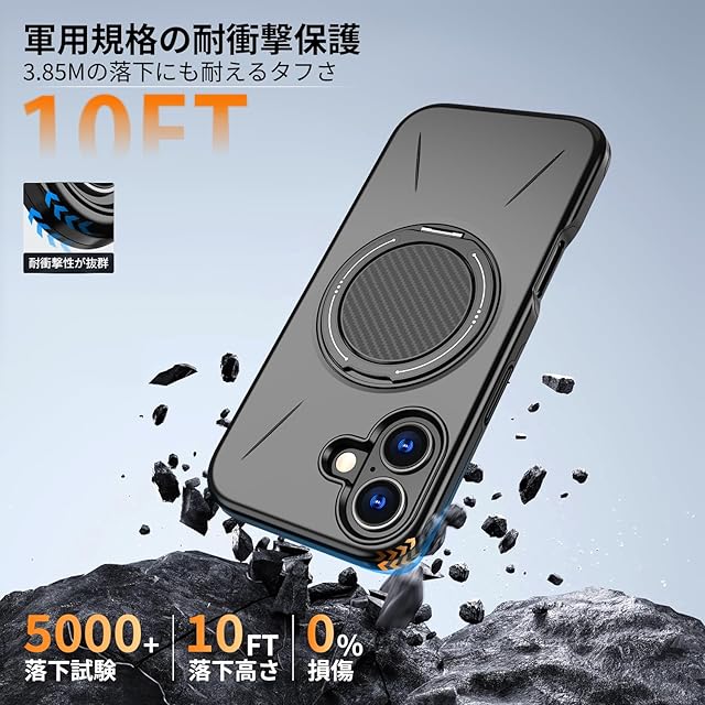 商品名:TLOMPLO for iPhone 17 用ケース magsafe対応 360°回転スタンド 耐衝撃 米軍MIL規格 強磁力 リング付き ワイヤレス充電対応 アイフォン 17 用カバー 指紋防止 レンズ保護 黒 525-ip17-01