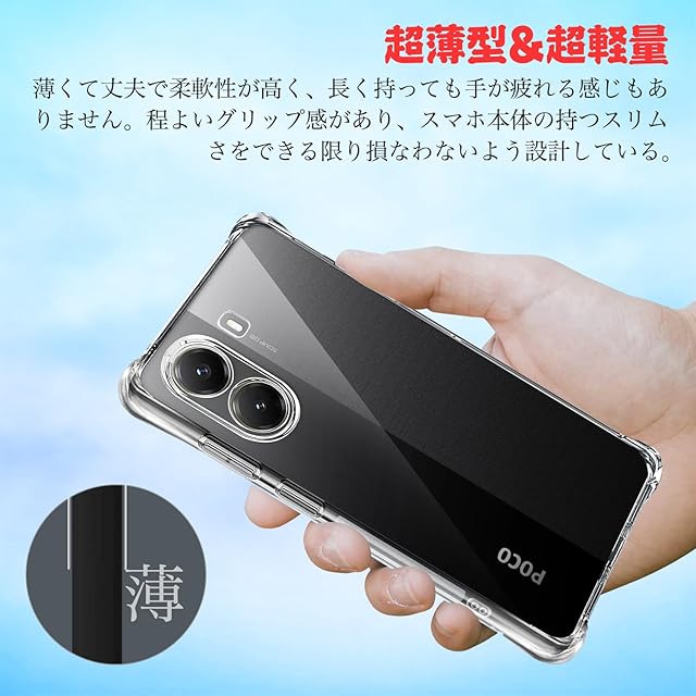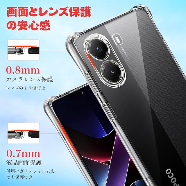 Xiaomi Poco X7 Pro ケース クリア【透明TPU・耐衝撃設計】pocox7pro ケース 柔軟素材 スリム 軽量 ワイヤレス充電対応 ポコx7pro カバー 指紋防止 黄ばみ防止 落下保護 滑り止め ぽこx7プロ カバー 透明 ストラップ穴付き