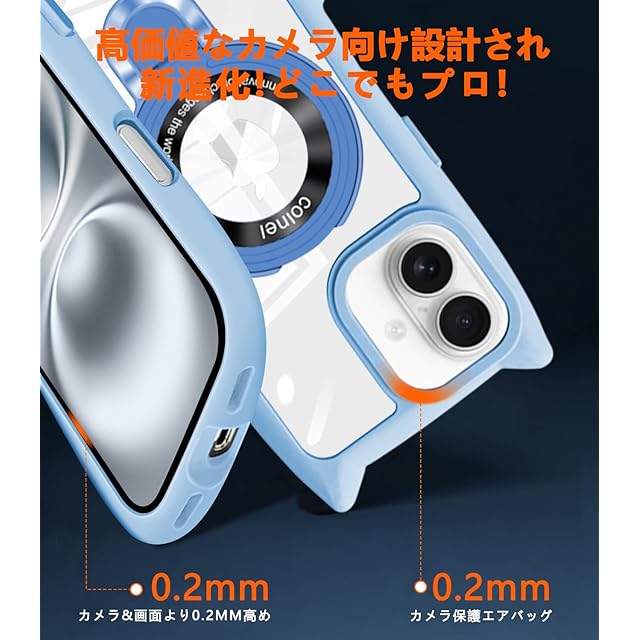 【iPhone 13/14 マホケース】iPhone 13/14 専用ケース。ご確認の上ご購入ください。品質に問題がある場合は、お気軽にお問い合わせください。 【優れた素材】側面を"TPU"のソフトな素材で衝撃を吸収させ、背面は透明度が維持出来るハードな"ポリカーボネート"をハイブリッドしたケース、透明度が高く、光透過率、黄ばみに強い。 【利便性で快適】わざわざスマホスタンドを買う必要はなく、代わりになるものを探す必要もない。フラット収納できるリングはスタンドになる。縦置き、横置きのどちらでも安定的に支え、120°で多角度自由に調整でき、視聴に楽しみ、首や肩周りリラックス、指と腕の疲れ解消し, どんなことをしていても、日常生活で両手解放! 【MagSafe対応】超世代的な隠しスタンドと強力なマグネットリングの強力な結合により、高い吸着力でガッチリと固定しながら充電ができます。安定性を持ち、充電器を近づけると高速ワイヤレス充電が実現です。また、磁気を利用しているため充電器以外にもスタンドやウォレットなどのアクセサリーに固定可能。 【製品】商品到着時の初期不良や間違い等があった場合、評価前にメールでご連絡を頂けください。お客様からのお問い合わせ内容に応じて商品交換・返品可能です。