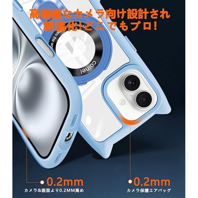 【iPhone 14plus マホケース】iPhone 14plus 専用ケース。ご確認の上ご購入ください。品質に問題がある場合は、お気軽にお問い合わせください。 【優れた素材】側面を"TPU"のソフトな素材で衝撃を吸収させ、背面は透明度が維持出来るハードな"ポリカーボネート"をハイブリッドしたケース、透明度が高く、光透過率、黄ばみに強い。 【利便性で快適】わざわざスマホスタンドを買う必要はなく、代わりになるものを探す必要もない。フラット収納できるリングはスタンドになる。縦置き、横置きのどちらでも安定的に支え、120°で多角度自由に調整でき、視聴に楽しみ、首や肩周りリラックス、指と腕の疲れ解消し, どんなことをしていても、日常生活で両手解放! 【MagSafe対応】超世代的な隠しスタンドと強力なマグネットリングの強力な結合により、高い吸着力でガッチリと固定しながら充電ができます。安定性を持ち、充電器を近づけると高速ワイヤレス充電が実現です。また、磁気を利用しているため充電器以外にもスタンドやウォレットなどのアクセサリーに固定可能。 【製品】商品到着時の初期不良や間違い等があった場合、評価前にメールでご連絡を頂けください。お客様からのお問い合わせ内容に応じて商品交換・返品可能です。