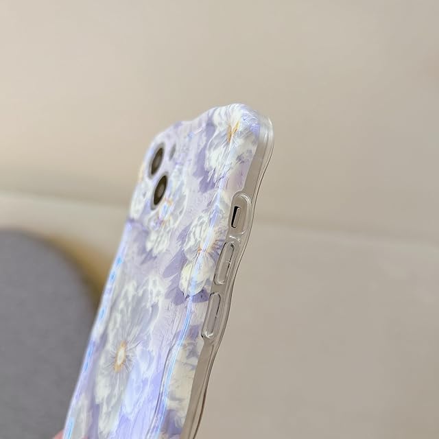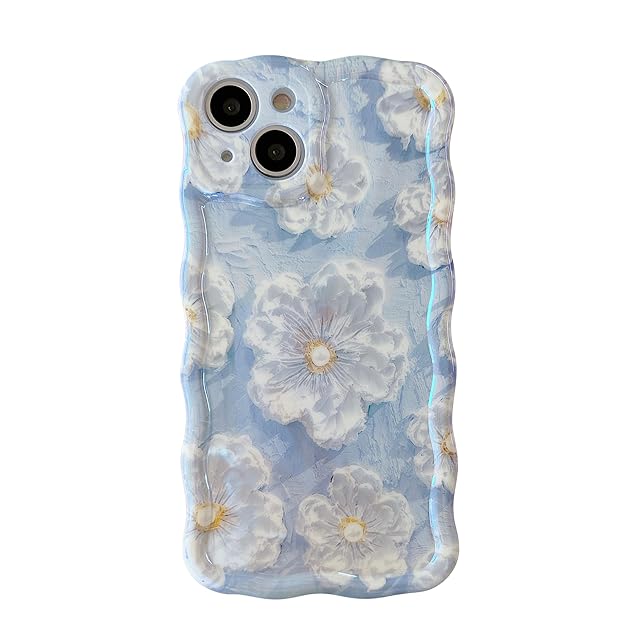 QLTYPRI iPhone 12 ProケースTPUカバー おしゃれ 韓国 可愛い 花柄 ウェーブ 薄型 軽量 耐衝撃 スマホケース ワイヤレス充電対応 ストラップホール付き アイフォン12 Pro ケース 6.1インチ 対応 - ライトブルー
