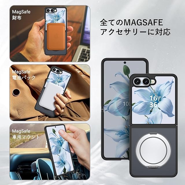 商品名:GUAGUA Galaxy Z Flip7 ケース MagSafe対応 ワイヤレス充電 galaxyzflip7 レンズ保護 半透明 耐衝撃 超薄 汚れ防止 マグネット搭載 ゼットフリップ7 指紋防止 米軍規格 落下時の衝撃を最大60%吸収 Samsung ゼットフリップ6 ケース カバー( ブラック)