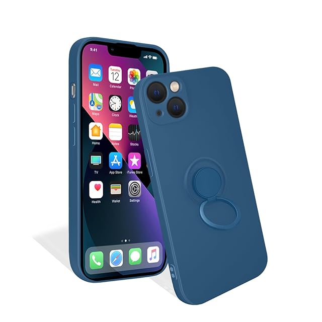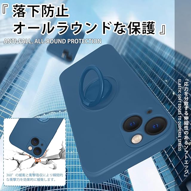 商品名:iPhone 13mini ケース リング付き シリコン 耐衝撃 アイフォン13MiNi リング カバー 全面保護 いphone 13mini スマホケース TPU 360°回転 スタンド機能 車載スタンド対応 ストラップホール付き 擦り傷防止 5.4インチ(ブルー)