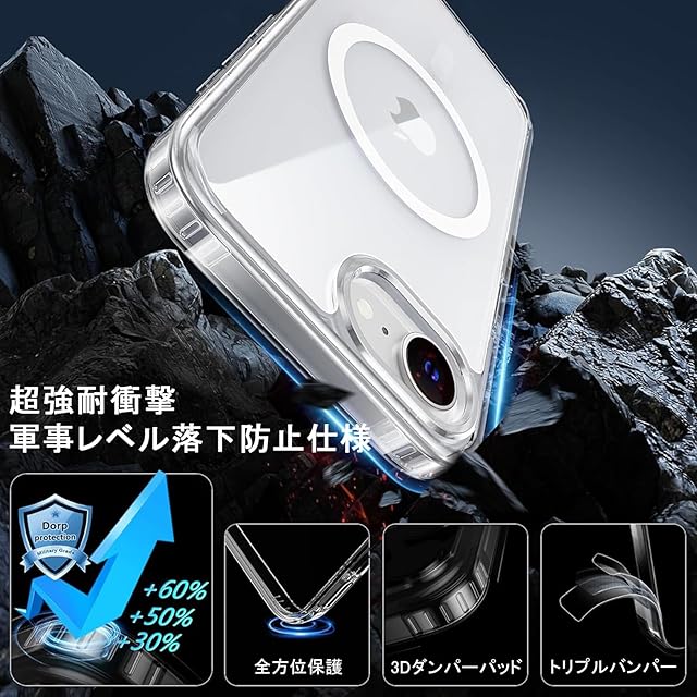 商品名:Voltup スマホカバーFor iPhone 16e 用 ケース 第4世代 se4ケース PC背面+TPUベゼル 耐衝撃 【MagSafe対応・米軍規格】 レンズ保護 黄変防止 傷防止 軽量 ストラップホール付き ワイヤレス充電 iPhone se4 カバー(クリア)