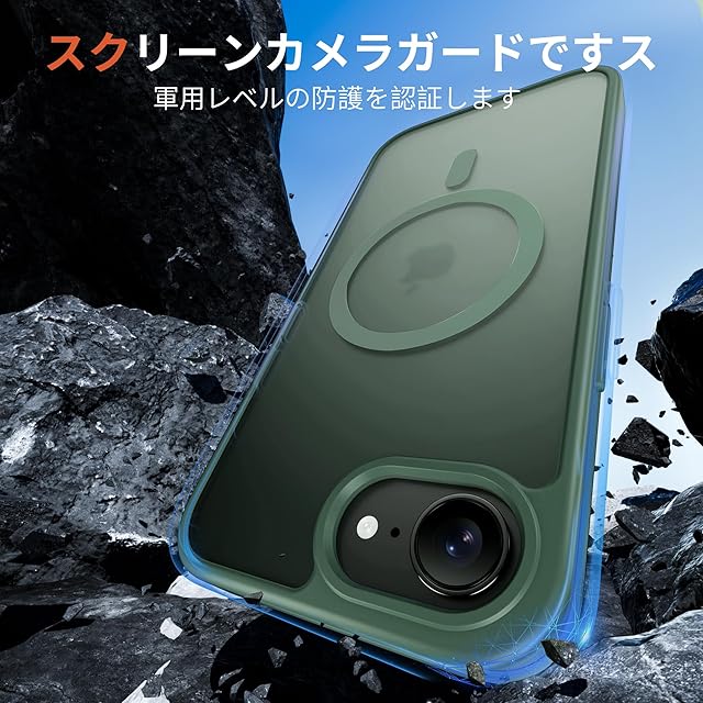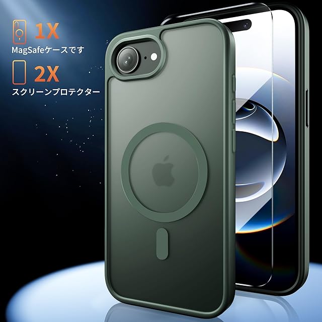 商品名:Bruzaio iPhone 16e ケース 2025【強化フィルム2枚付き】Magsafe対応・米軍規格 いphone16e ケース 半透明 耐衝撃 指紋防止 滑り止め マグネット搭載 ワイヤレス充電 耐久性 全面保護 黄ばみなし あいほん16eスマホケース 6.1インチ用,グリーン