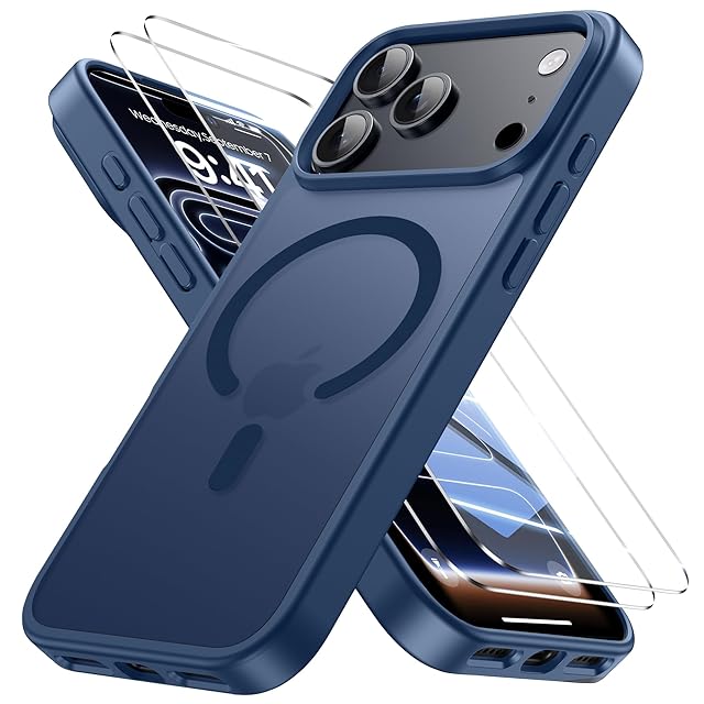 Bruzaio iPhone 17 Pro 用 ケース【強化フィルム2枚付き】Magsafe対応・米軍規格 いphone17Pro スマホケース 半透明 耐衝撃 指紋防止 滑り止め マグネット搭載 ワイヤレス充電 耐久性 黄ば 全面保護 あいふおん17Proケース 6.3インチ用,ダークパープル