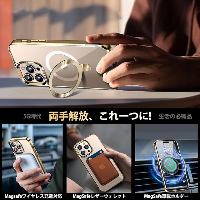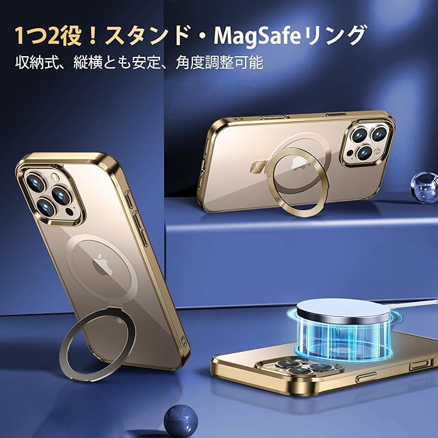 商品名:【CD MagSafeリング・スタンド一体】iPhone 16 Pro 用クリアケース[MagSafe対応・隠しスタンド] [本体の色・メッキバンパー]ストラップホール付き 角度調整可 米軍MIL規格取得・耐衝撃 アイホン16 Pro透明ケース スマホケース16プロ人気6.3インチ(ゴールド)