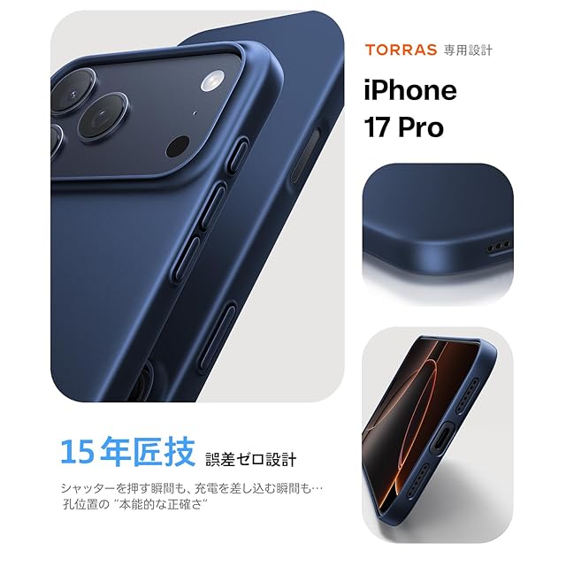 商品名:TORRAS iPhone 17 Pro 用 ケース 【超薄型・マット質感】 薄型 マット仕上げ さらさら 手触り 指紋防止 擦り傷防止 防汚仕様 日本製PC ワイヤレス充電対応 [OriginFit] For iphone 17 Pro ケース 6.3インチ (ディープブルー)