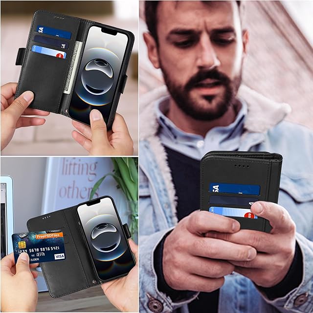 Rssviss iPhone 16e 用 ケース 手帳型 アイフォン16E 用 ケース カード収納 スタンド機能 全面保護 衝撃吸収 スマホケース サイドマグネット ブラック