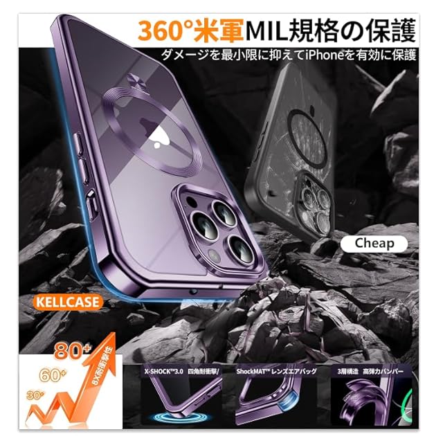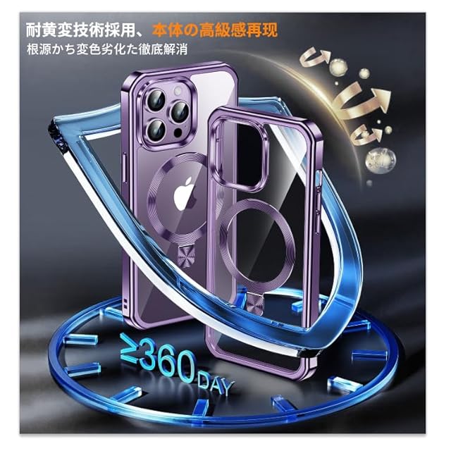 商品名:【360°全面保護・スタンド・Magsafe対応】KELLCASE iPhone 14 Pro Max 用 ケース 両面 隠しスタンド・CDリング 横縦両立 ワイヤレス充電 いphone14 promax カバー 黄変防止透明PC背面 メッキバンパー 米軍MIL規格耐衝撃 マグセーフ対応 高感度タッチ ストラップホール付き アイフォン14プロマックス 用 ケース 6.7インチ(ディープパープル)