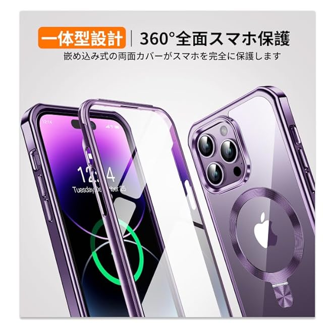 【360°全面保護・ガラスフィルム内蔵】当店のアイホン14 Pro Max ケースは、傷が付きにくい高品質アクリル製の背面、衝撃吸収エアガードコーナー、そして内蔵された高解像度・高感度のスクリーンプロテクターを搭載しています。通常の保護を大きく上回る安全感を提供し、落下後でもスマートフォンを日常的な衝撃から完全に守ります。このアイフォン14promax 全面 ケースは、追加の強化ガラスフィルムを貼る必要がなく、すぐに取り付けることができ、気泡やずれといった問題を心配する必要もありません。タッチ操作への反応も迅速で、防油・防水性能が高く、指先の感触も快適です