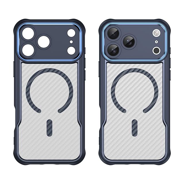 Panda Baby iPhone 17 Pro Max 用 ケース MagSafe対応 半透明 マット質感 指紋防止 耐衝撃バンパー マグネット搭載 レンズ全面保護 「おしゃれなカーボン調」 (ブルー)