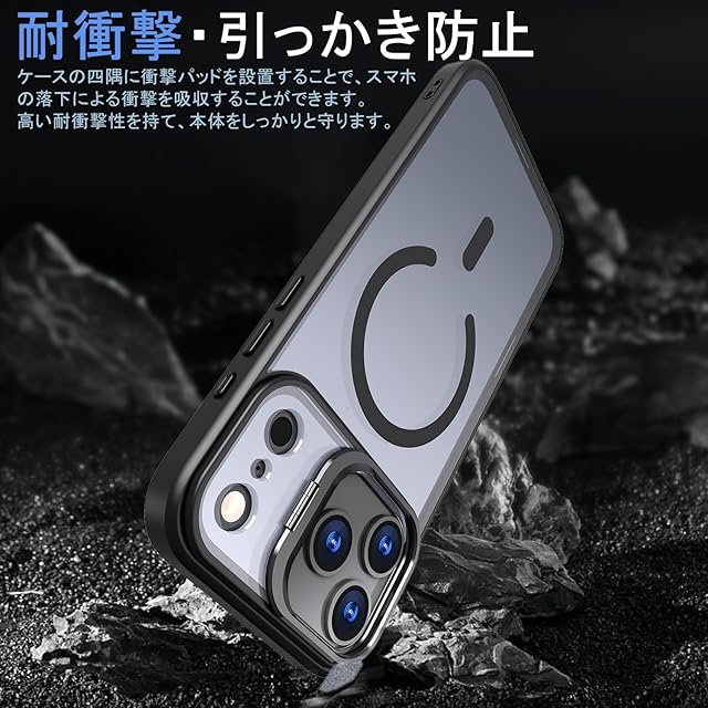 商品名:【TIFIYA】For iPhone 17 Pro Max 用 ケース スタンド付き MagSafe マグネット搭載 TPU+PC 軽量 米軍MIL規格 衝撃吸収 スマホケース 耐久性 アイフォン 17 プロマックス 対応 ケース ワイヤレス充電対応 黄ばみなし 落下防止 iphone 17 pro max 保護カバー(ブラック/半透明)