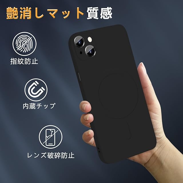 商品名:MiaoKeDa iPhone 13 MagSafe対応 シリコン ケース イフォン 13 マグネット搭載 ワイヤレス充電 スマホケース 耐衝撃 全面保護 ストラップホールバンパー いpほね13 人気 薄型 いphone カバー ブラック