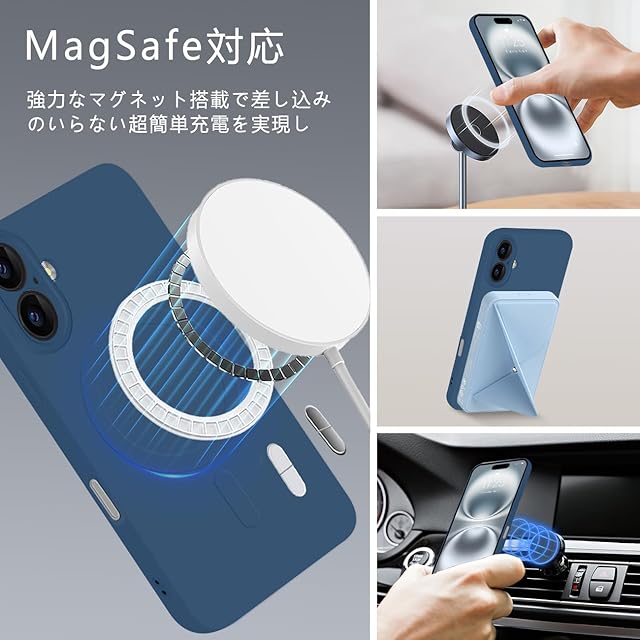 商品名:MiaoKeDa iPhone 16 MagSafe対応 シリコン ケース イフォン 16 マグネット搭載 ワイヤレス充電 スマホケース 耐衝撃 全面保護 ストラップホールバンパー いpほね16 人気 薄型 いphone カバー ネイビーブルー