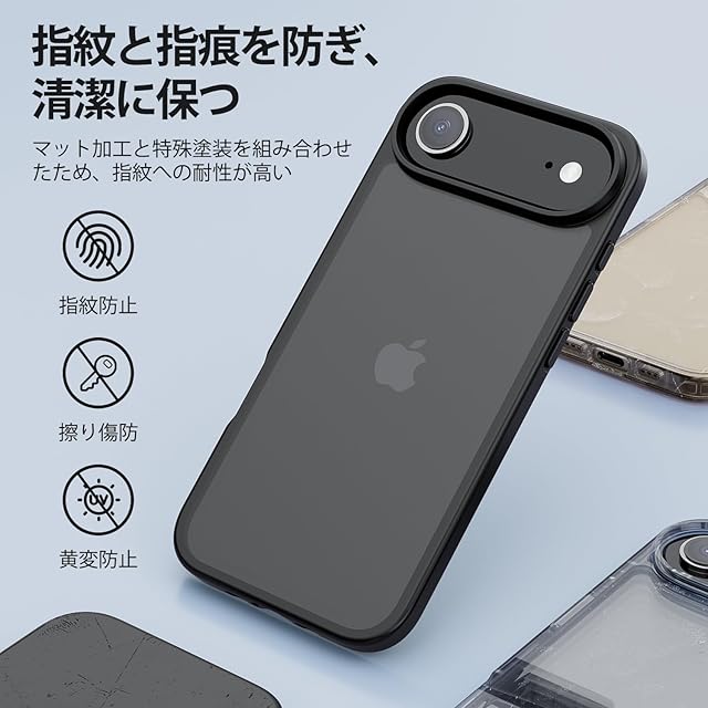 商品名:iPhone Air ケース マットクリア TPU+PC 半透明 耐衝撃 滑り止め 指紋防止 米軍MIL規格 黄変防止 ワイヤレス充電対応 スマホケース iPhone Air [WHTMM]