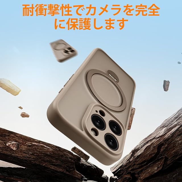 商品名:【カチッ!2024新開発・安定性】Gtsoho iPhone 16 Pro 用 ケース ゼンマイ式スタンド縦横両 リング マグネット搭載 MagSafe対応 ワイヤレス充電対応 米軍MIL規格耐衝撃 指紋防止 黄変防止 マグセーフ対応 6.3インチ いphone16pro 用ケース「回転ブラケット」砂漠ゴールド