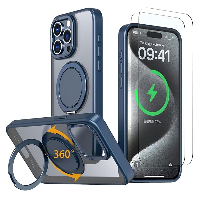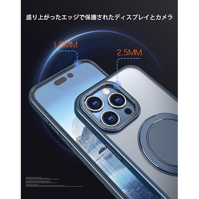 商品名:【強化フィルム2枚付き】HCXLYP iPhone 13 Pro Max ケース Magsafe対応 スタンド付き マグネット搭載 ワイヤレス充電 耐衝撃 マット感 半透明 指紋防止 アジャスタブルスタンド アイフォン13プロマックス カバー ブルー