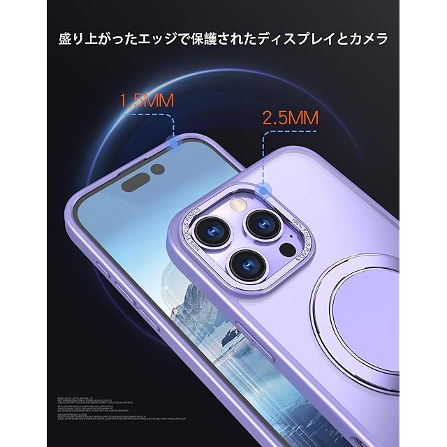 商品名:【強化フィルム2枚付き】HCXLYP iPhone 15 Pro ケース Magsafe対応 スタンド付き マグネット搭載 ワイヤレス充電 耐衝撃 マット感 半透明 指紋防止 アジャスタブルスタンド アイフォン15プロ カバー ライラック紫
