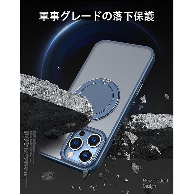 商品名:【強化フィルム2枚付き】HCXLYP iPhone 16 Pro ケース Magsafe対応 スタンド付き マグネット搭載 ワイヤレス充電 耐衝撃 マット感 半透明 指紋防止 アジャスタブルスタンド アイフォン16プロ カバー ブルー