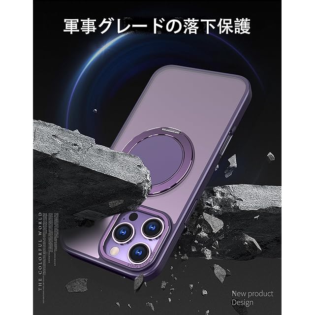 商品名:【強化フィルム2枚付き】HCXLYP iPhone 16 Pro ケース Magsafe対応 スタンド付き マグネット搭載 ワイヤレス充電 耐衝撃 マット感 半透明 指紋防止 アジャスタブルスタンド アイフォン16プロ カバー 濃い紫色