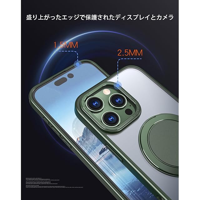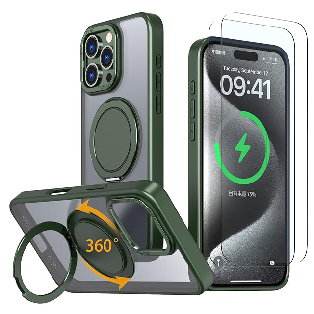 商品名:【強化フィルム2枚付き】HCXLYP iPhone 16 Pro ケース Magsafe対応 スタンド付き マグネット搭載 ワイヤレス充電 耐衝撃 マット感 半透明 指紋防止 アジャスタブルスタンド アイフォン16プロ カバー 濃い緑色
